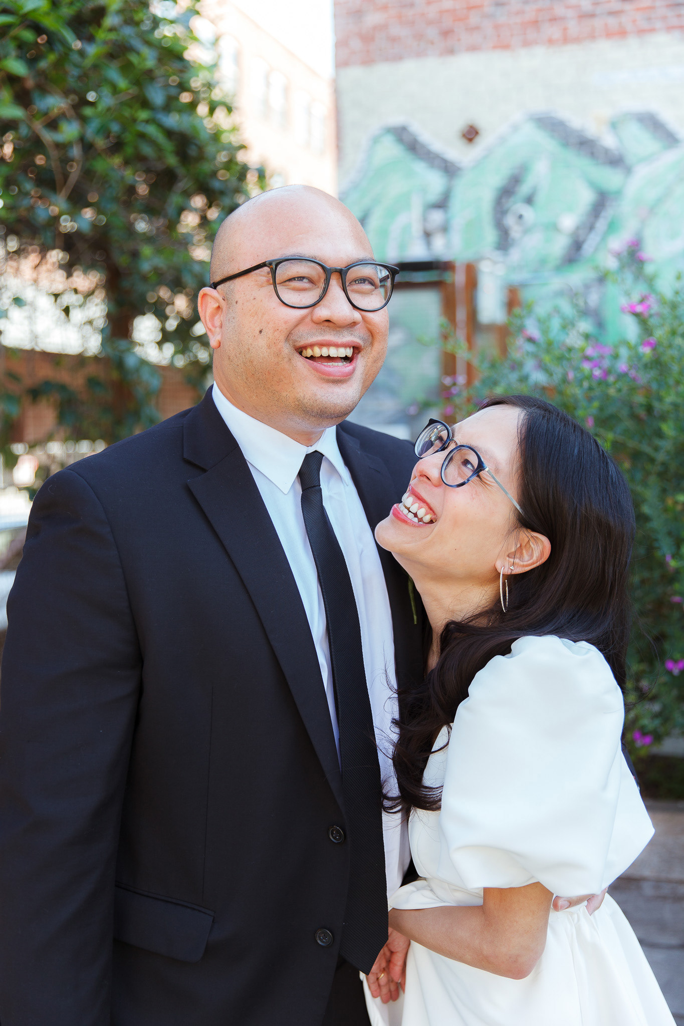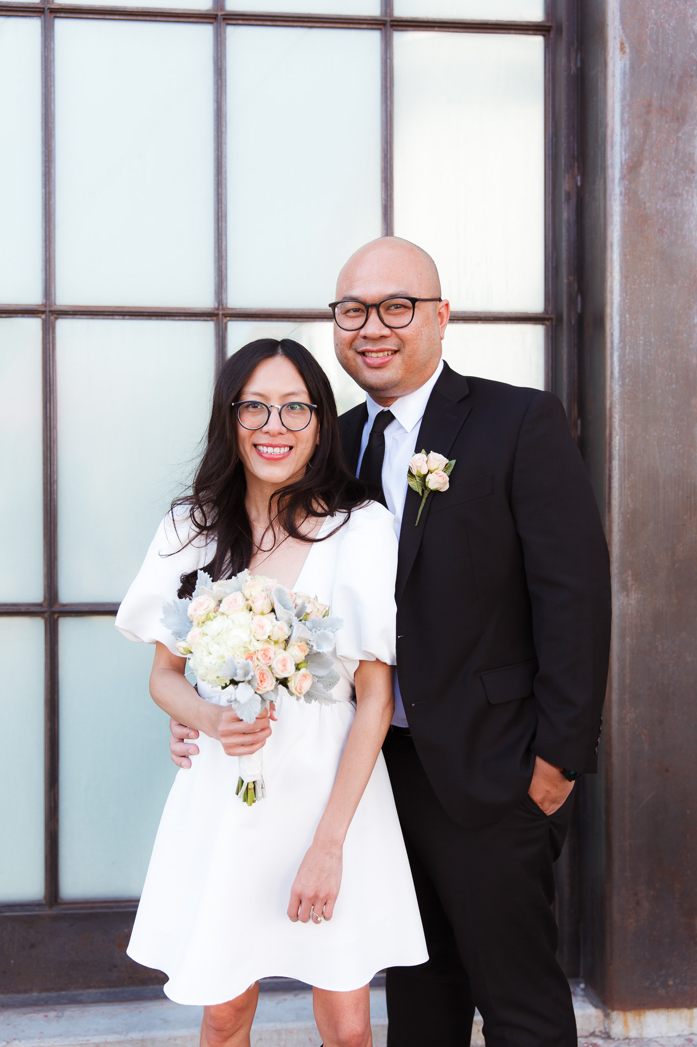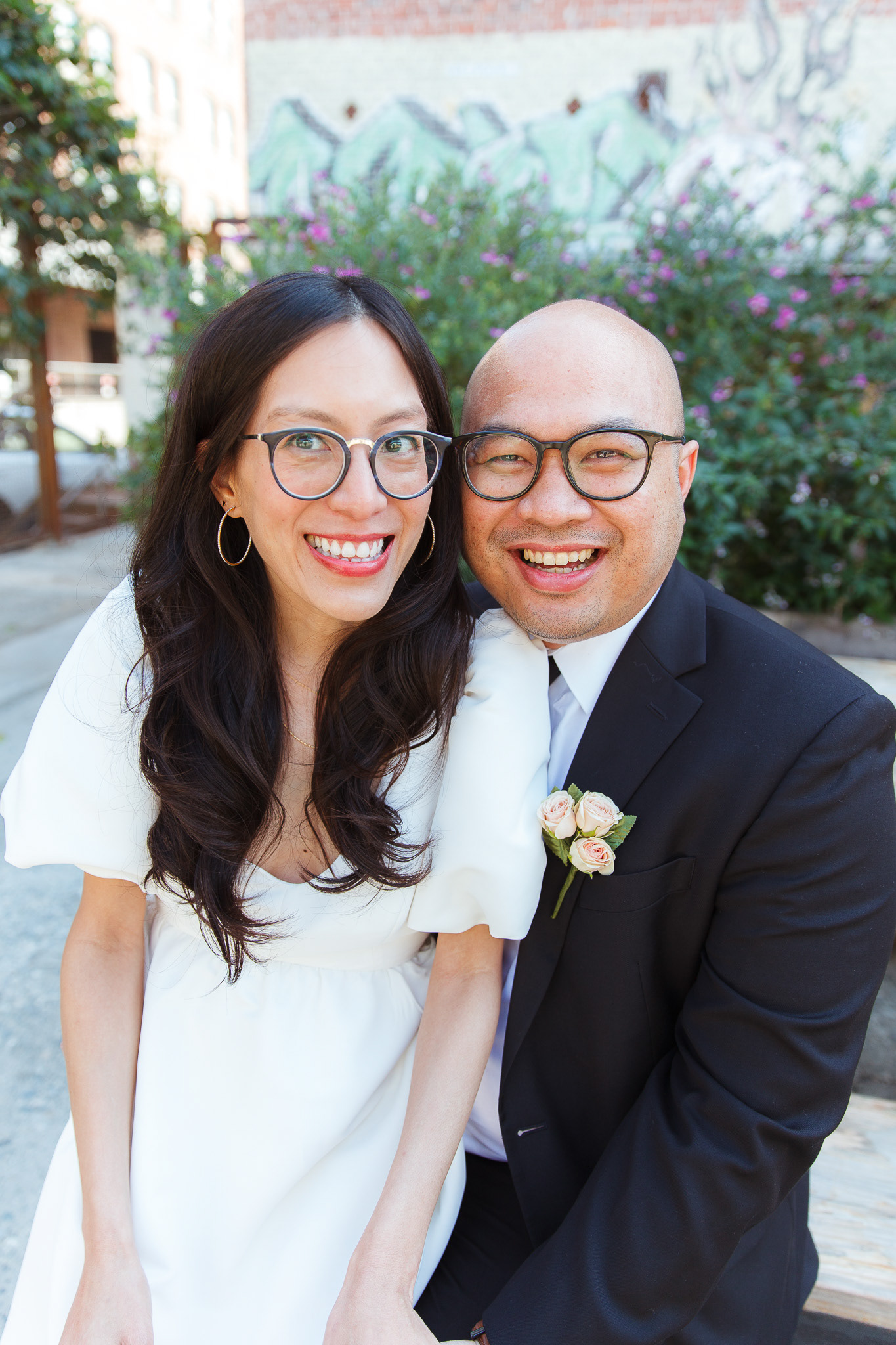 Before heading to their courthouse ceremony, we squeezed in a quick pre-wedding shoot around LA Arts District. These two are always exploring new places to eat in the city, so it was the perfect backdrop: industrial textures, soft light, and cozy corners that matched their vibe. With just a short shoot and a lot of love, we kept things relaxed, candid, and fun!
