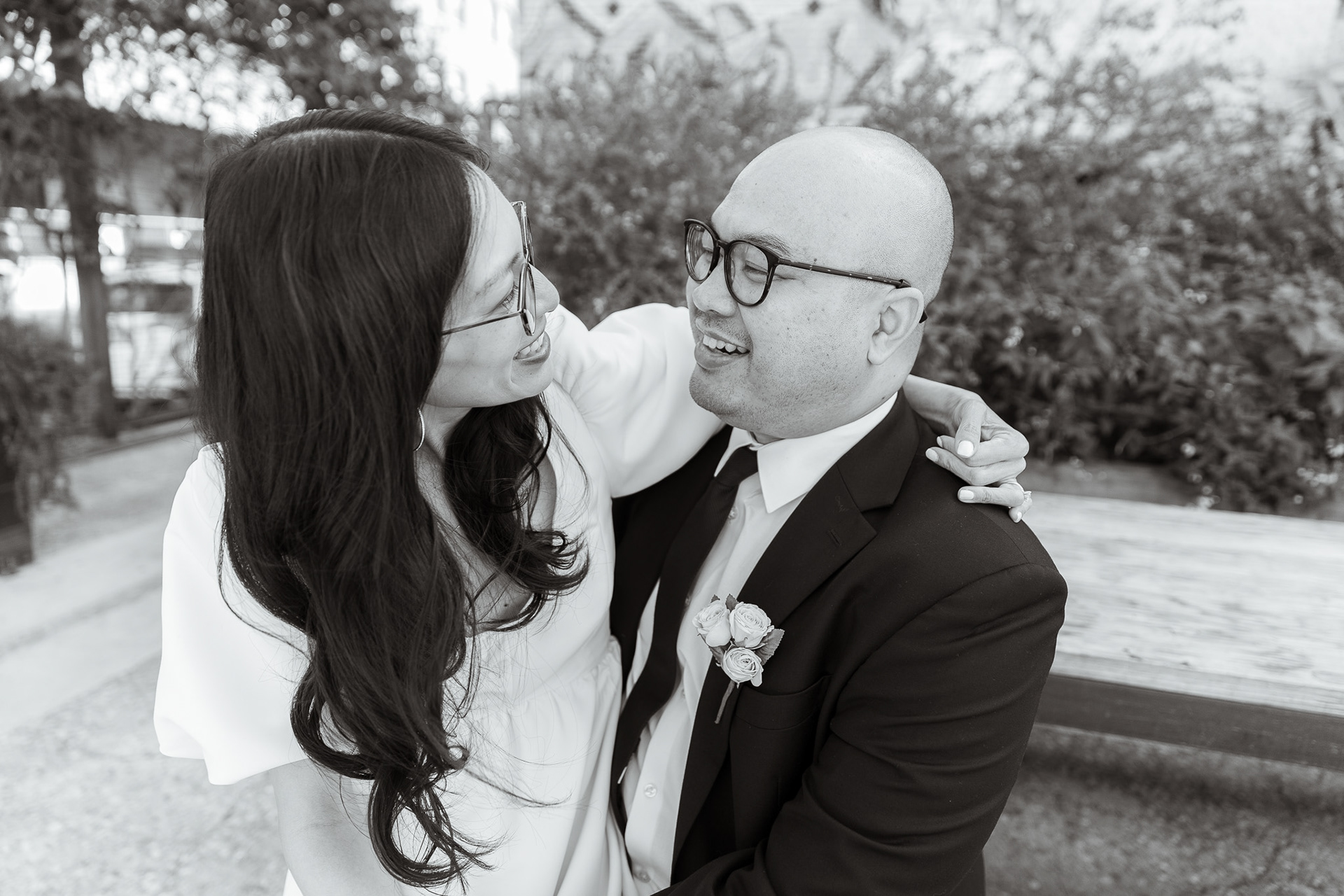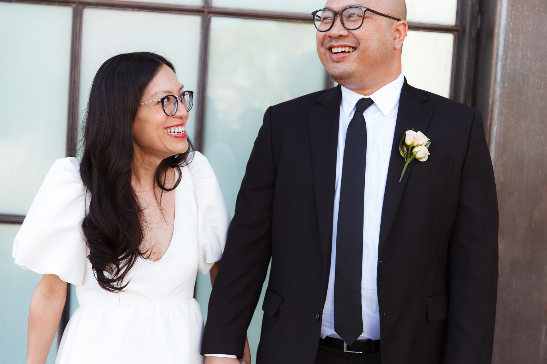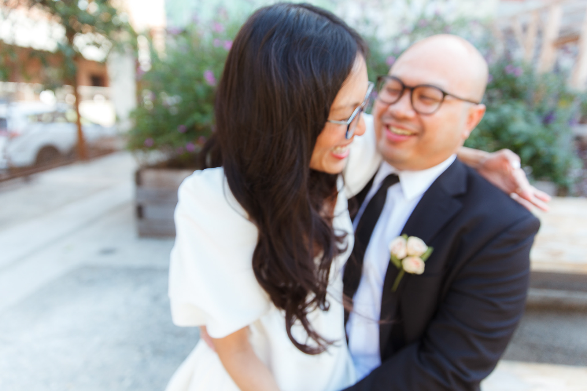 Before heading to their courthouse ceremony, we squeezed in a quick pre-wedding shoot around LA Arts District. These two are always exploring new places to eat in the city, so it was the perfect backdrop: industrial textures, soft light, and cozy corners that matched their vibe. With just a short shoot and a lot of love, we kept things relaxed, candid, and fun!